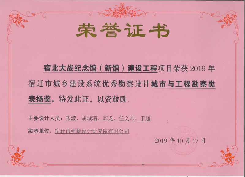 2、宿北大戰(zhàn)紀(jì)念館(新館)建設(shè)工程 城市與工程勘察類表揚(yáng)獎(jiǎng)